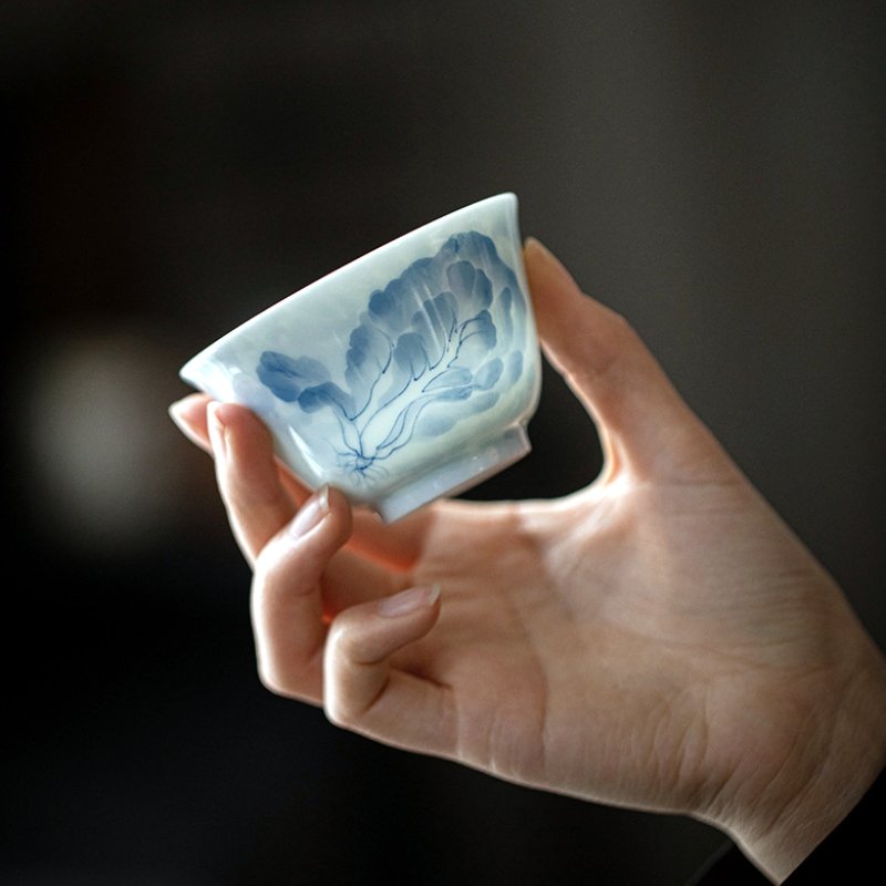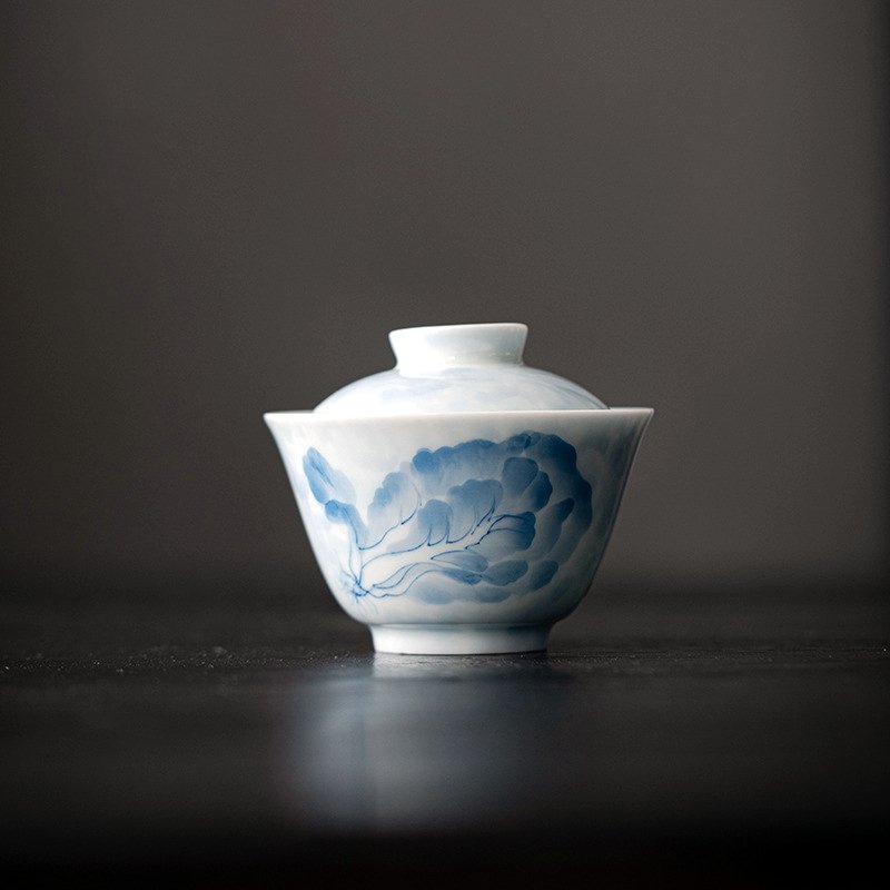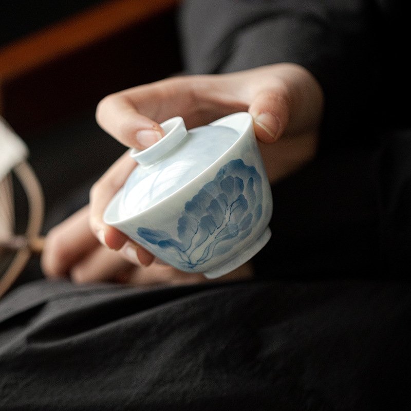Blue and White Hand-Painted Cabbage Gaiwan