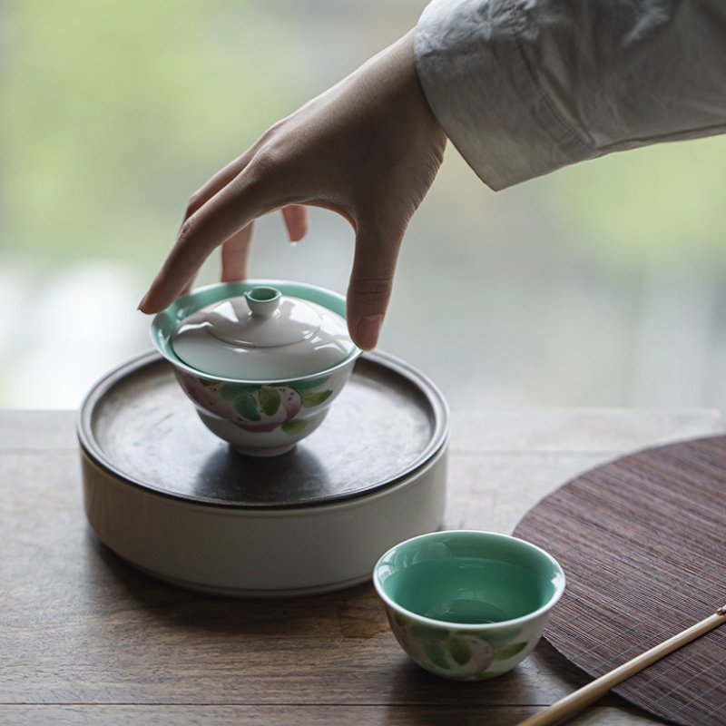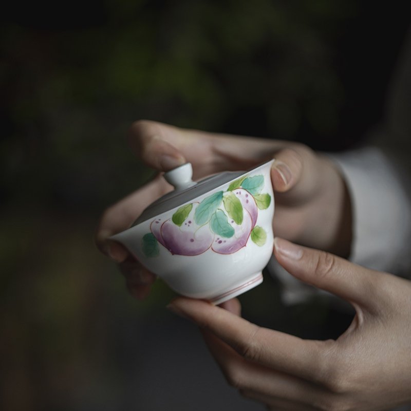 Hand-Painted Porcelain Peach Gaiwan