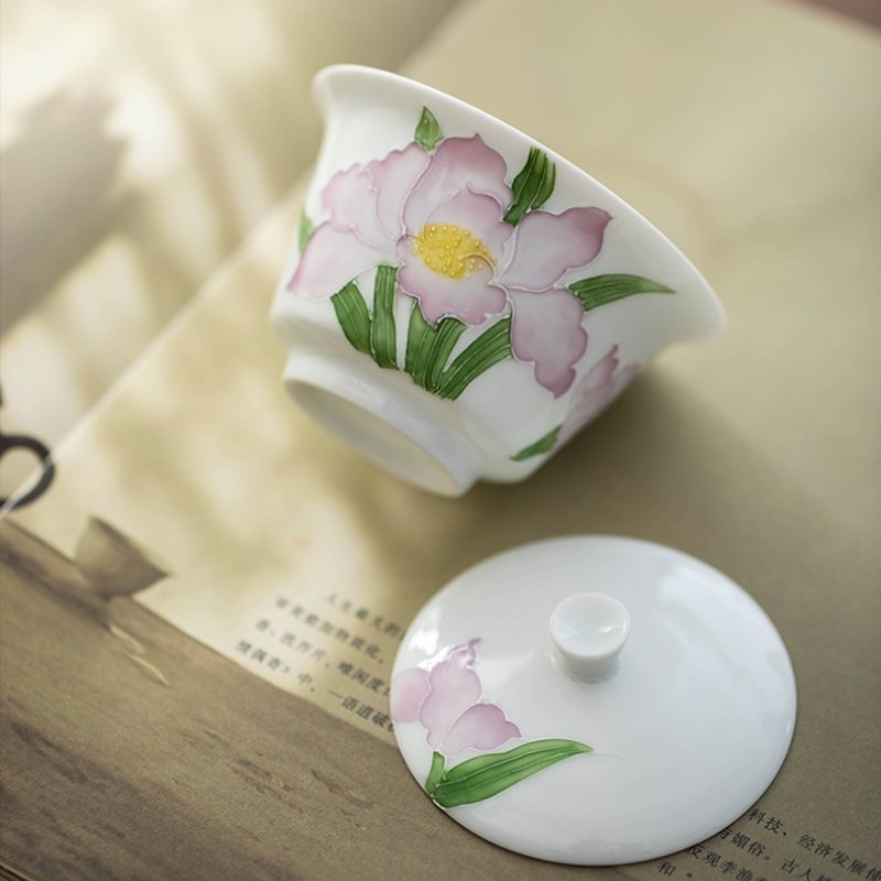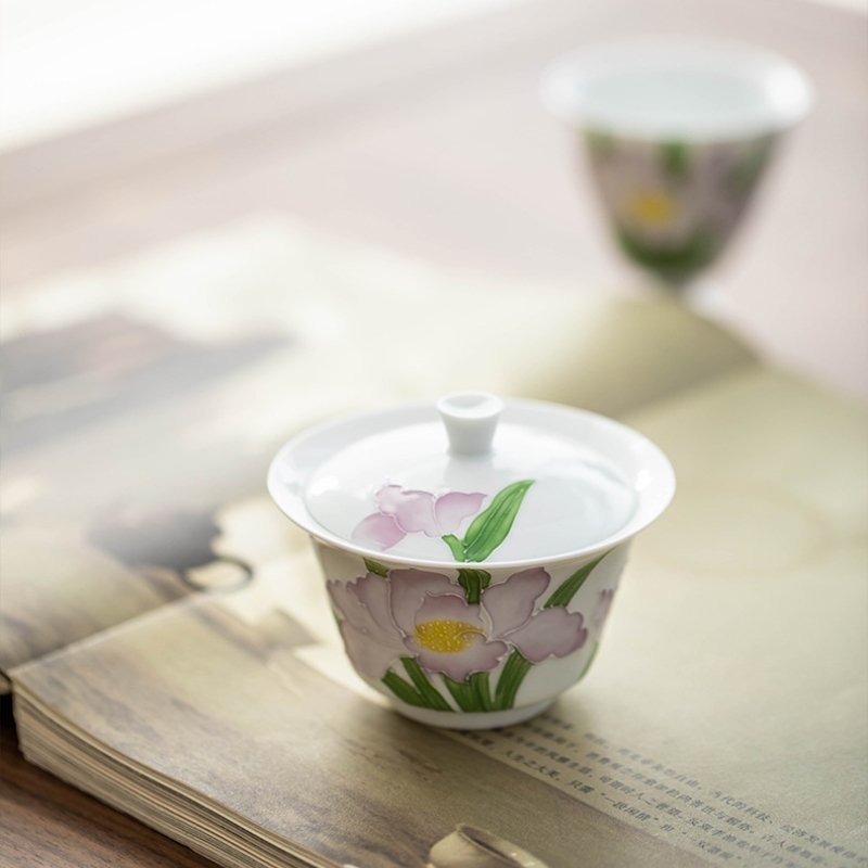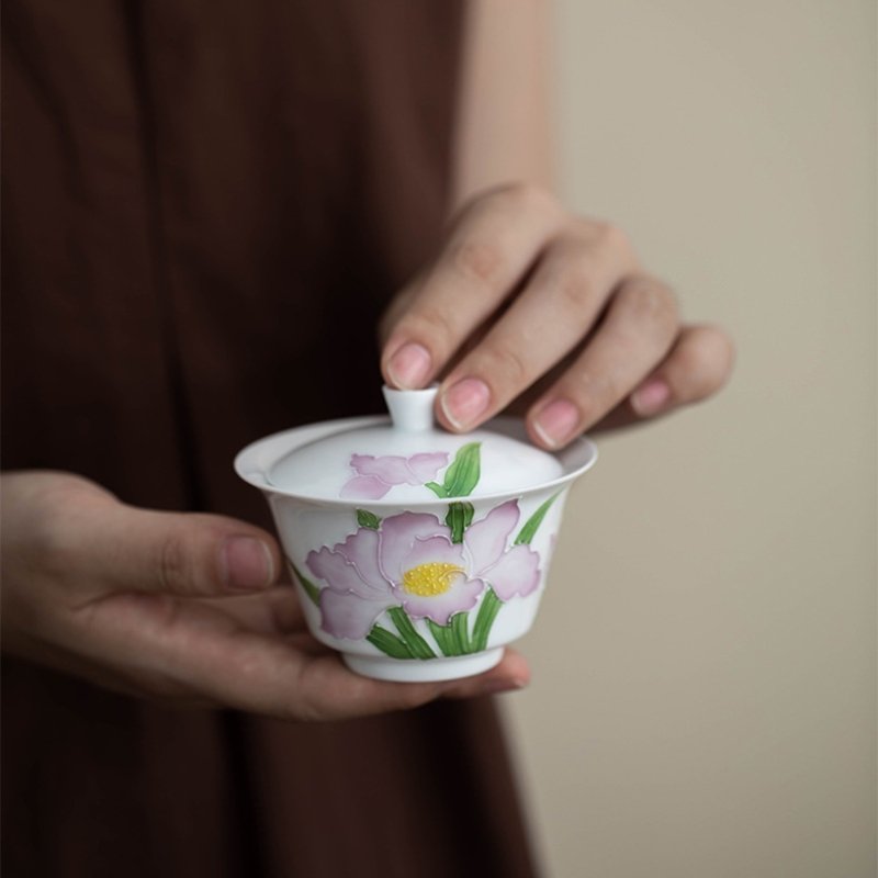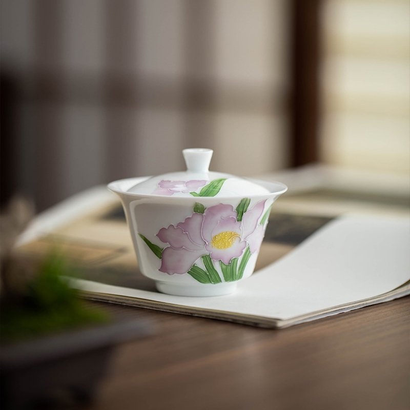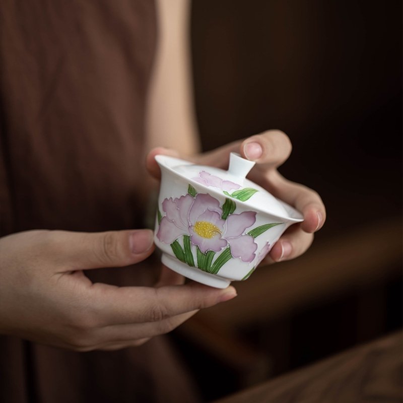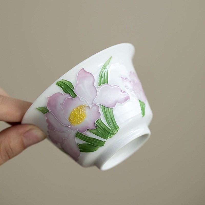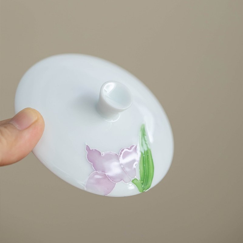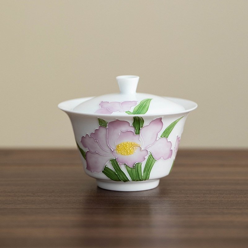 Hand-Painted Raised Carving Iris Gaiwan 110ml