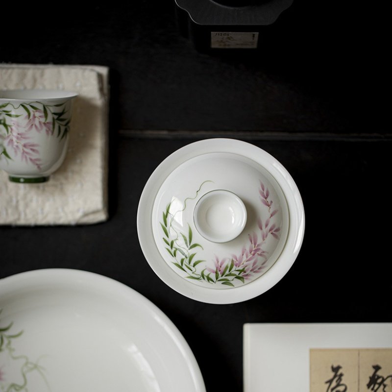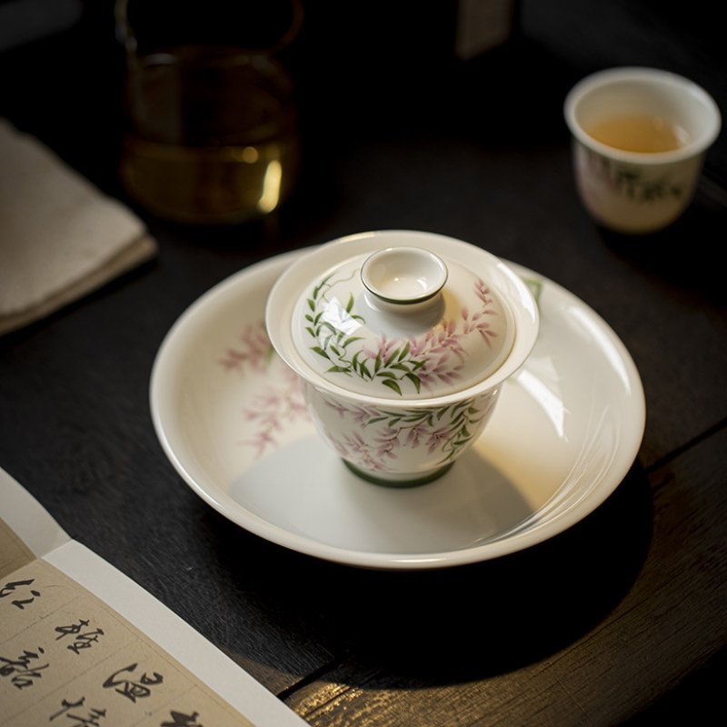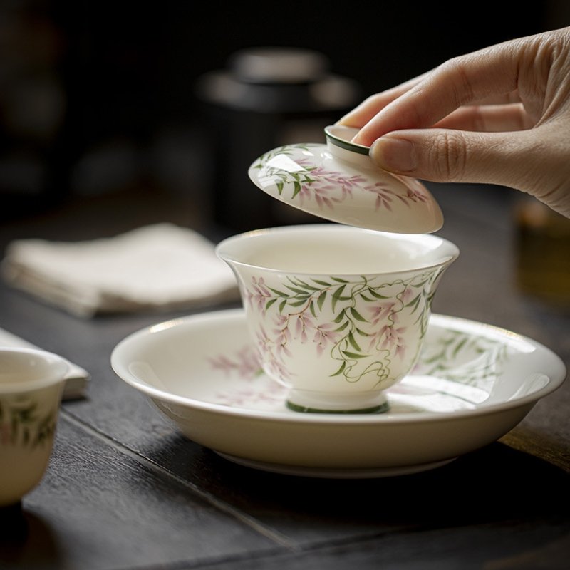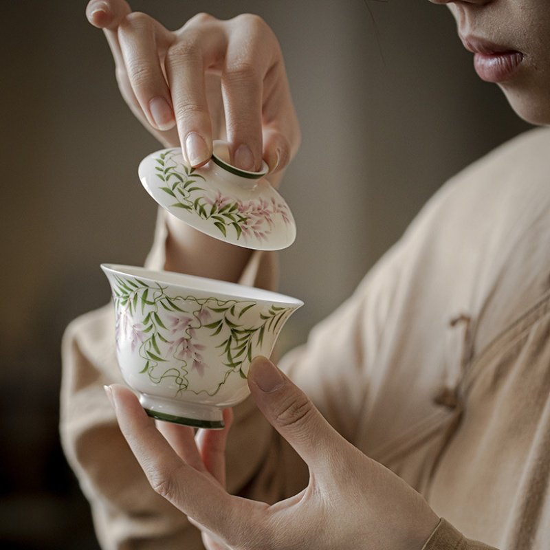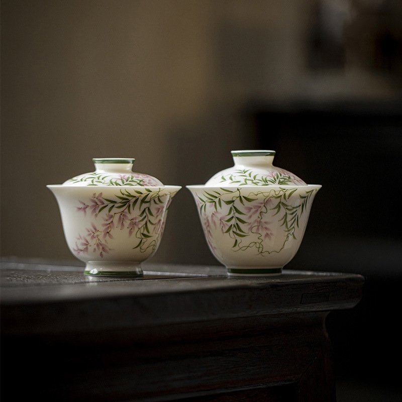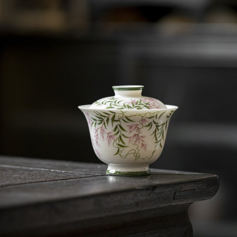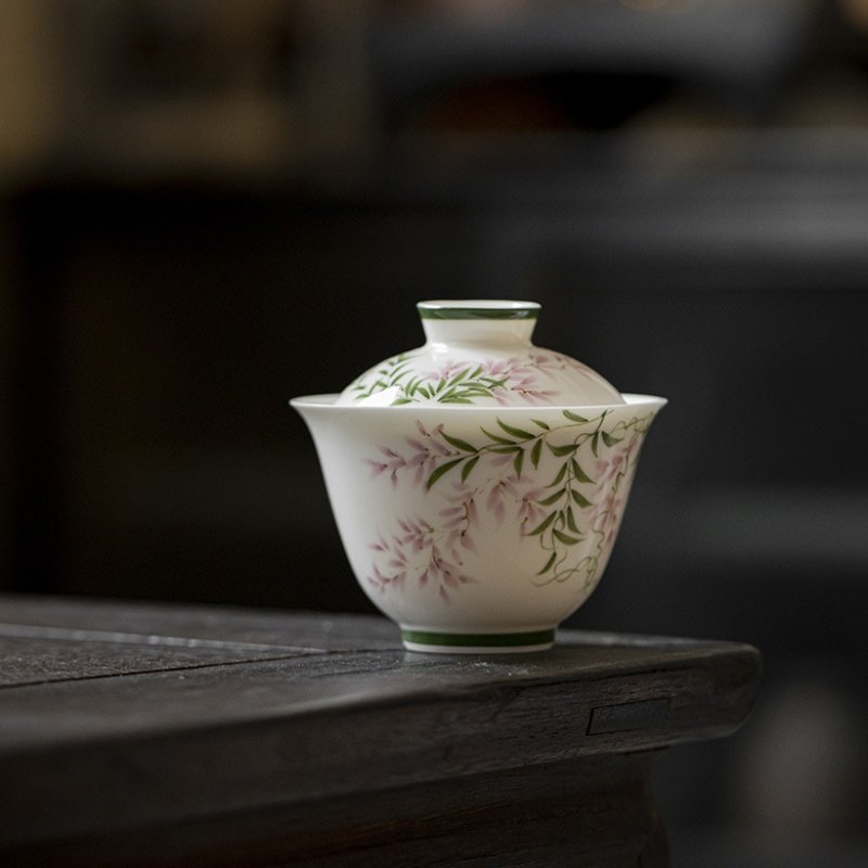 Hand-Painted Spring Breeze Wisteria Gaiwan