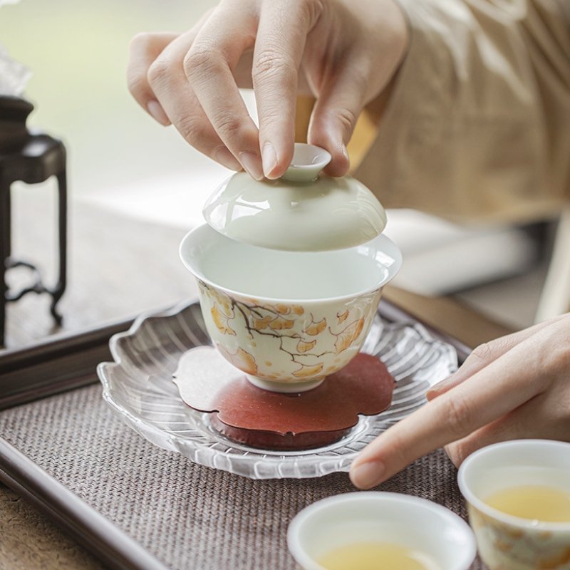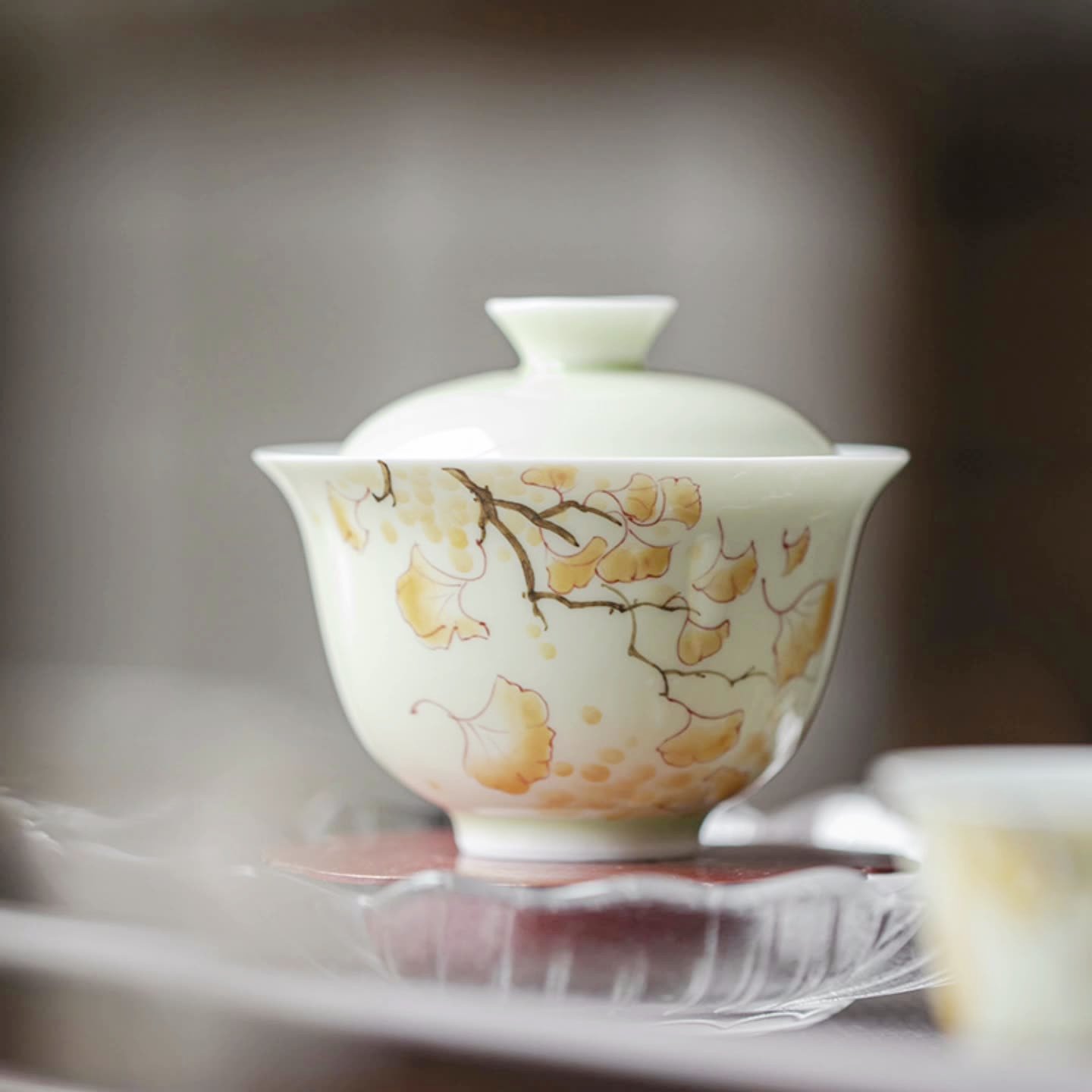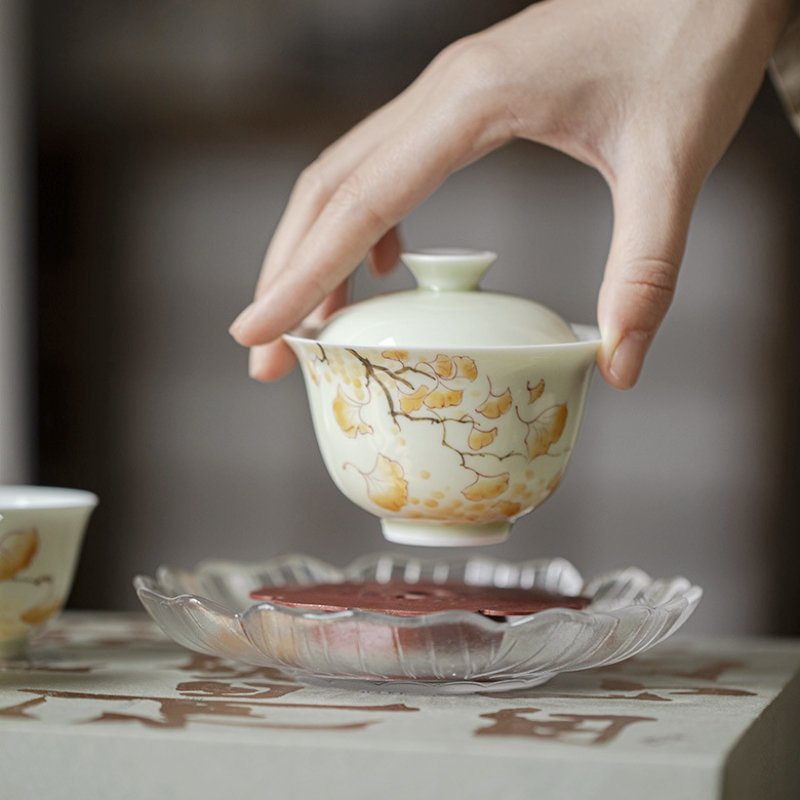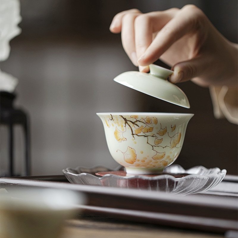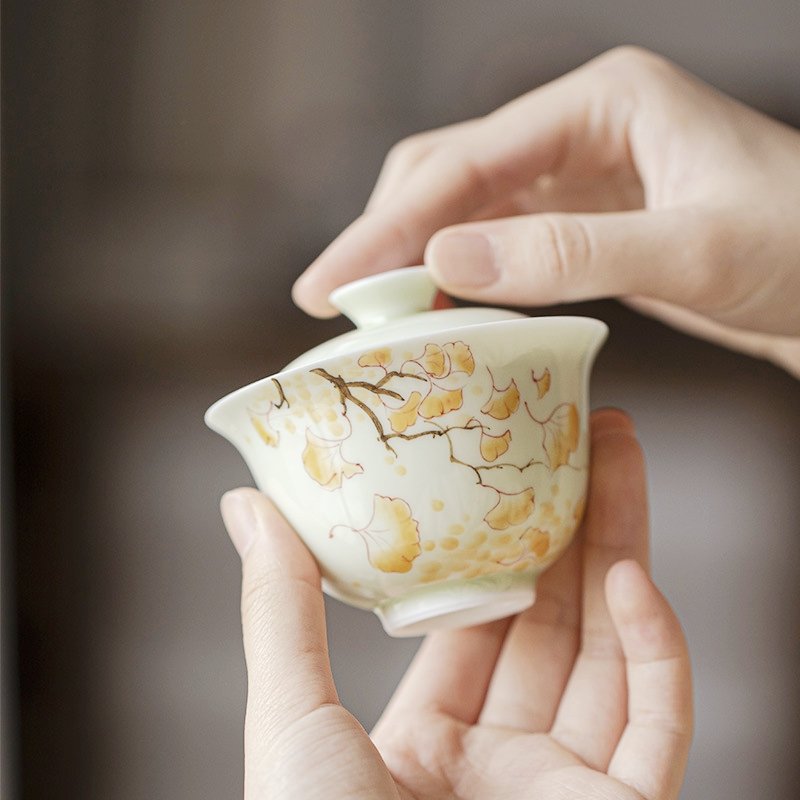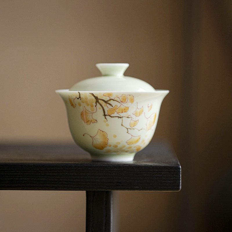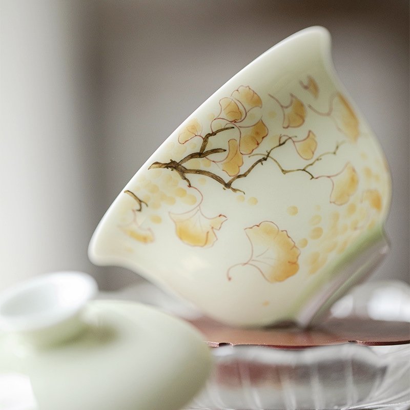 Hand-Painted Yellow Gingko Leaf Underglaze Gaiwan