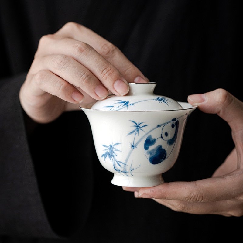 Panda Playing with Bamboo Underglaze Gaiwan