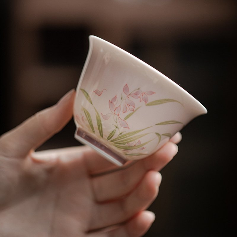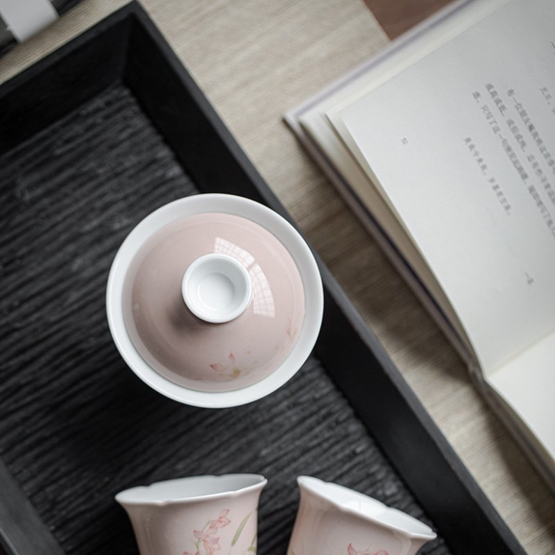 Pink Orchid Hand-Painted Gaiwan