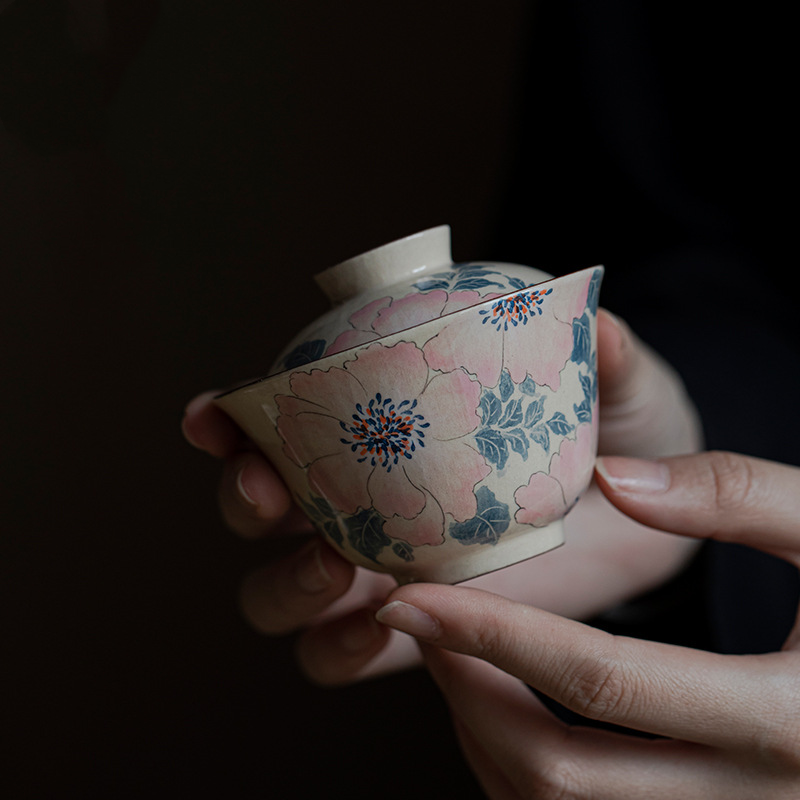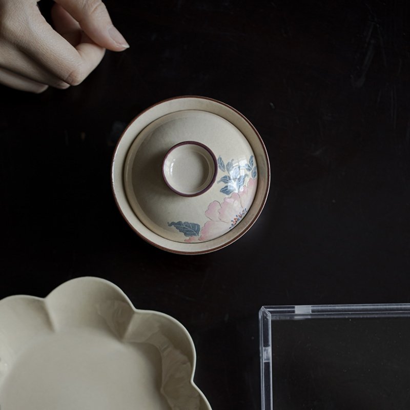 Underglaze Painted Peony Gaiwan 120ML