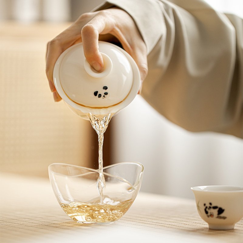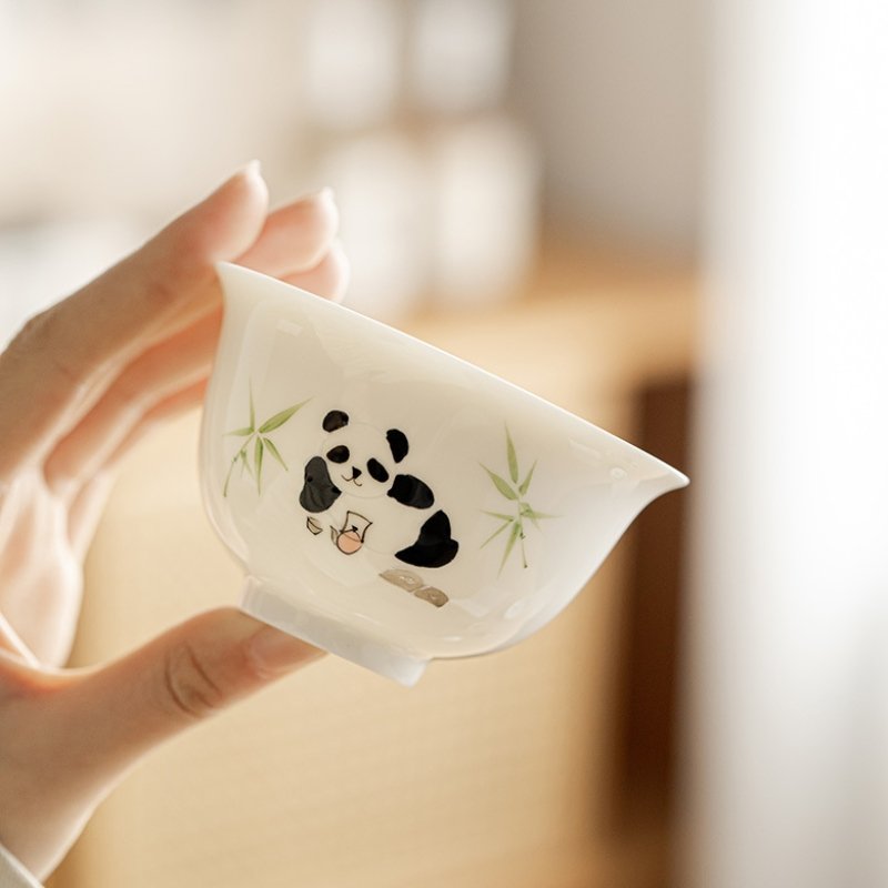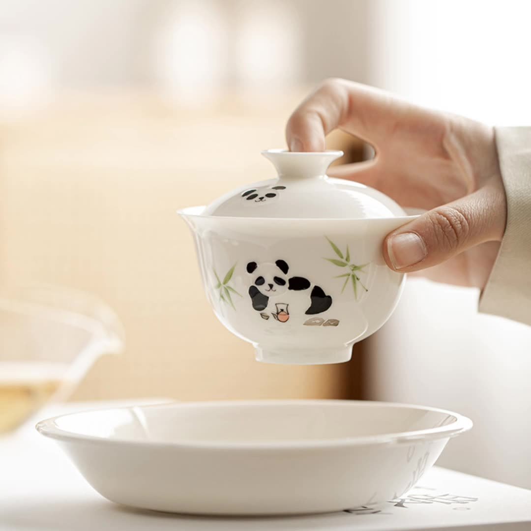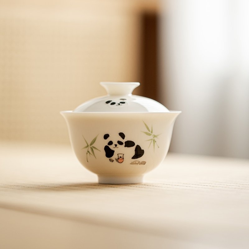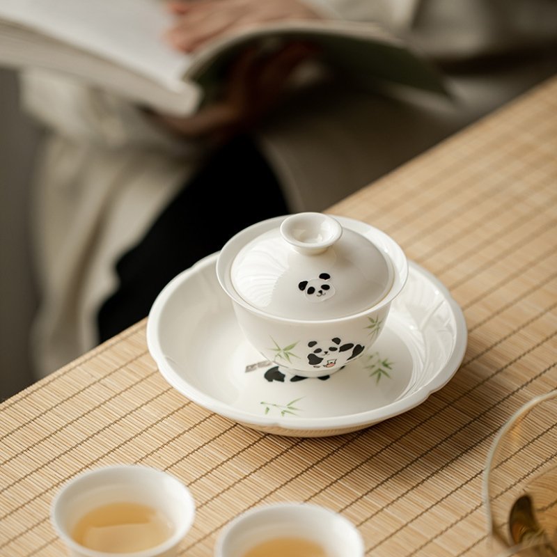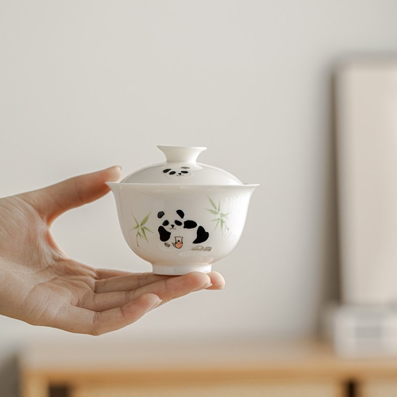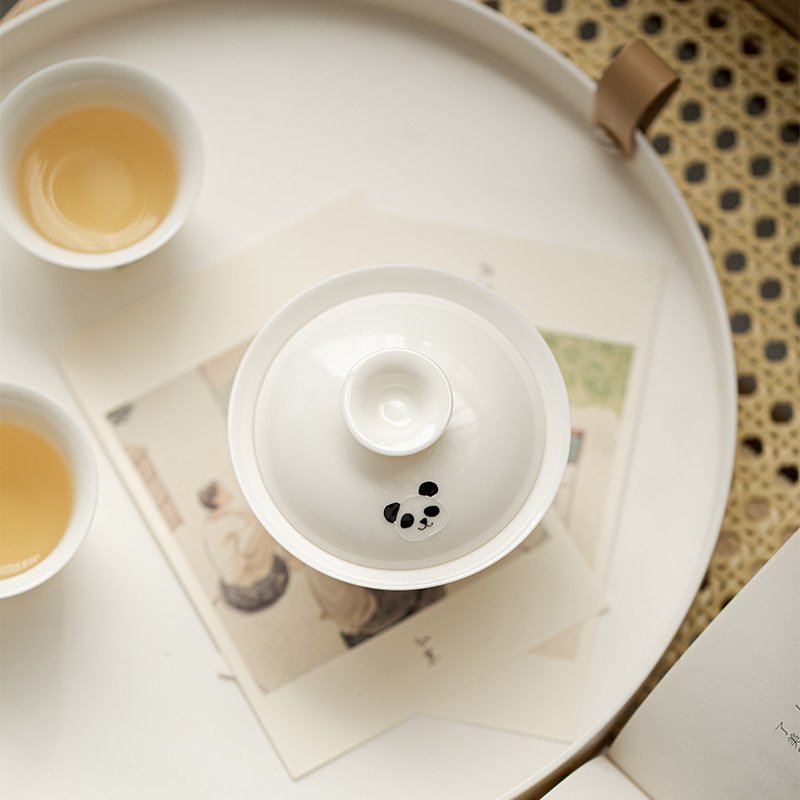 White Porcelain Panda Drinking Tea Gaiwan
